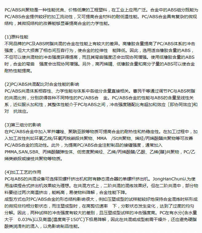 PC/ABS共聚物性能的四点因素