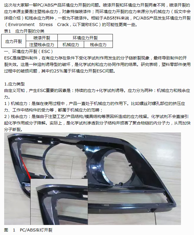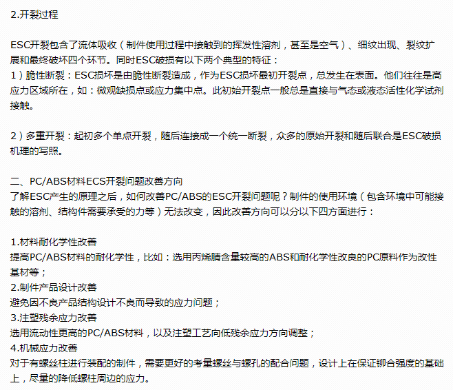 关于PC/ABS产品环境应力开裂分析