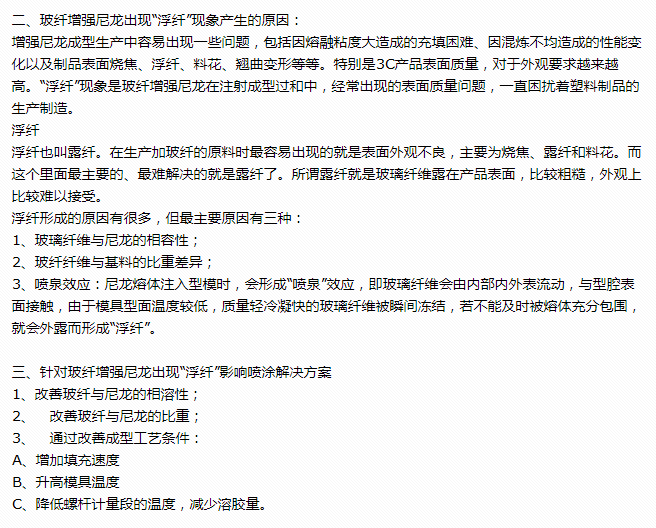 玻纤增强尼龙PA出现浮纤影响油漆喷涂怎么办?